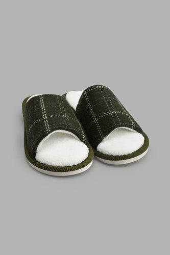 Olive Checkered Quilted Slipper شبشب كاروهات مبطن باللون الزيتي