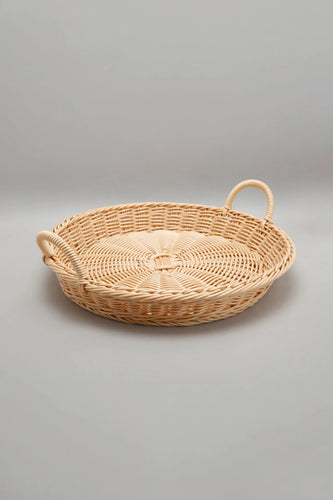 Beige Round Woven Basket With Handle سلة منسوجة دائرية بيج مع مقبض