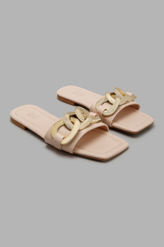 Beige Mule With Chain Trim حذاء مفتوح بلون بيج مزين بسلسال ذهبي