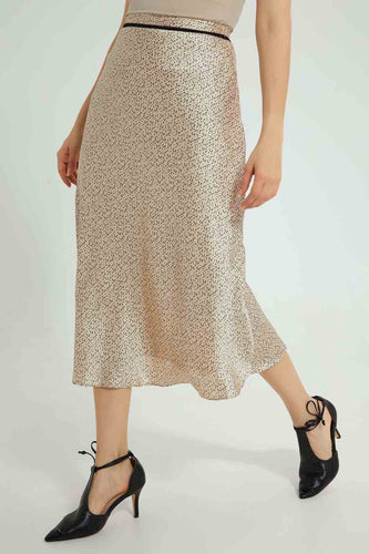 Beige Printed Satin Skirt تنورة ستان باللون البيج