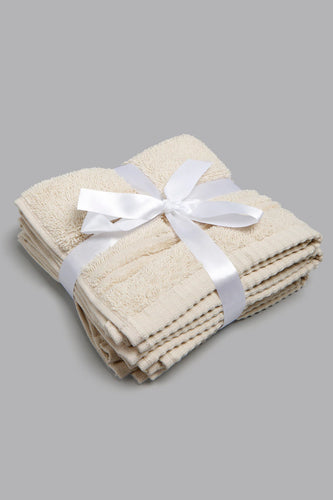 Beige Soft Cotton Face Towel Set (4 Piece) طقم فوط وجه قطن ناعم بيج (4 قطع)