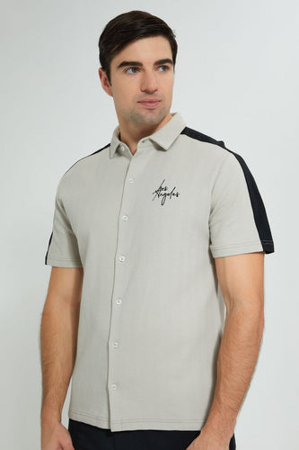 Beige Short-Sleeved Shirt قميص باللون البيج بأكمام قصيرة