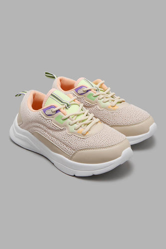 White And Beige Lace-Up Trainer حذاء رياضي باللون الأبيض والبيج