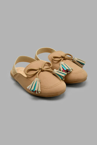 Beige Tassel Trim Mule صندل مزين باللون البيج
