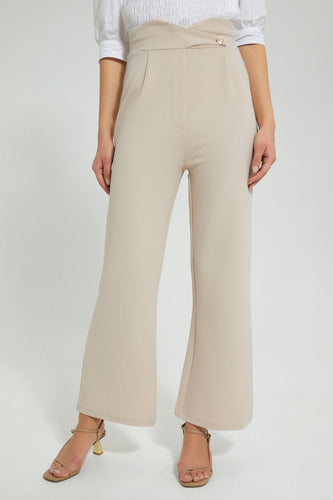 Beige Wide Leg Trouser بنطلون واسع باللون البيج