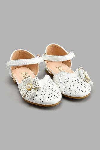 White Embossed Sandal صندل منقوش باللون الأبيض للبنات