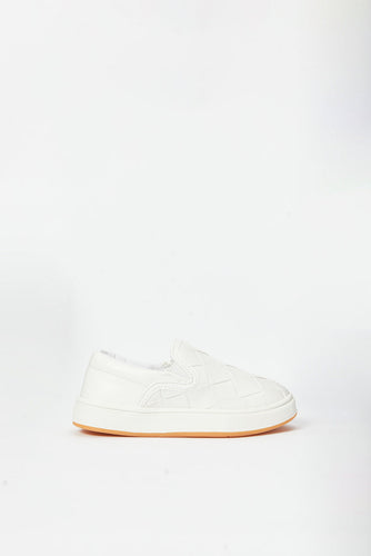 • حذاء محبوك باللون الأبيض للأولاد الصغار
