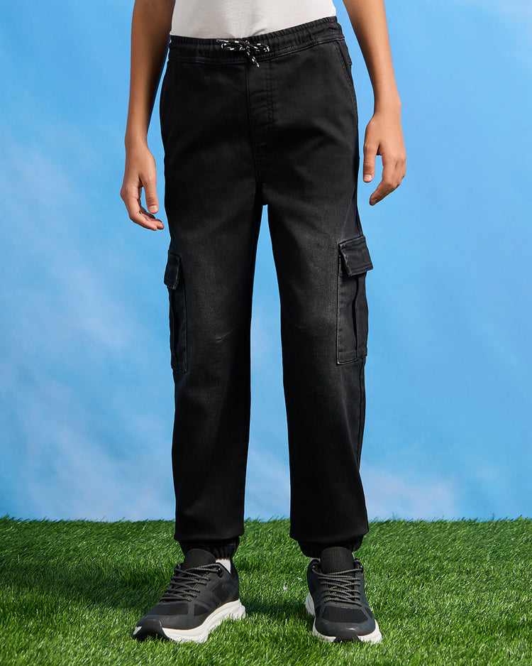 بنطال رياضي أسود سهل الارتداء للأولاد الكبار