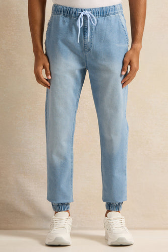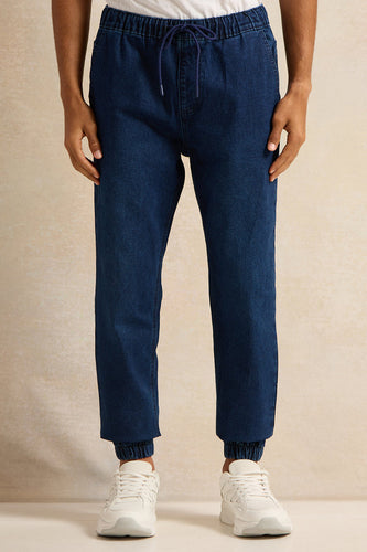 بنطال جينز رجالي رياضي بقصّة رياضية باللون الأزرق الداكن