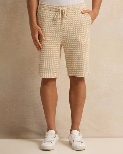 شورت رجالي مريح مزين باللون البيج