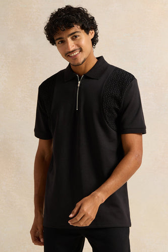 تي شيرت رجالي أسود مطبوع عليه عبارة "يلا شباب"