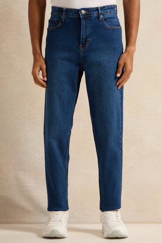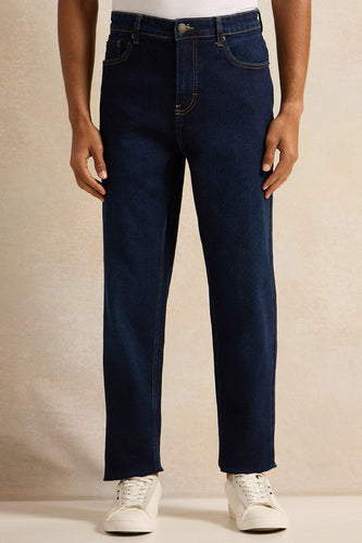 بنطلون جينز رجالي بقصّة مستقيمة باللون الأزرق الداكن