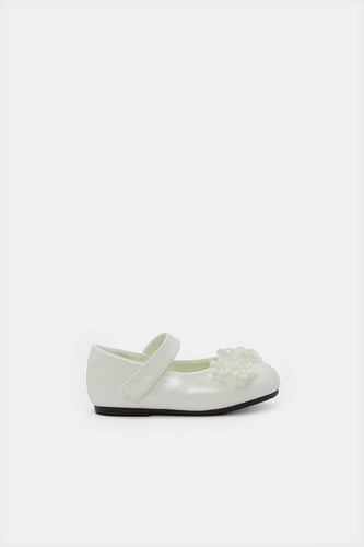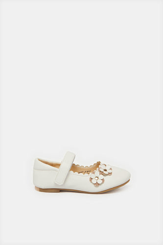 حذاء باليه مزينة بالزهور باللون الأبيض للبنات