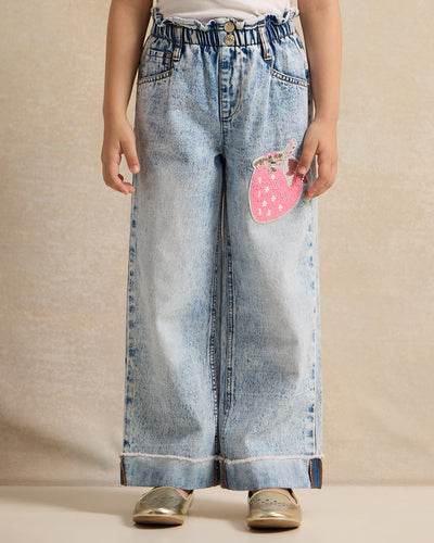 بنطلون جينز واسع باللون الأزرق للبنات الصغار