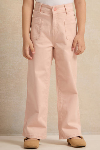 بنطلون جينز بقصة مستقيمة باللون الوردي للبنات الصغار