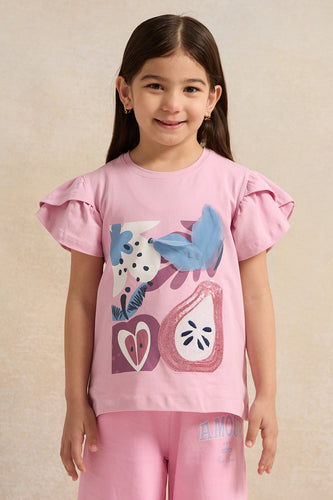 • تي شيرت بناتي مطبوع عليه صورة وردية