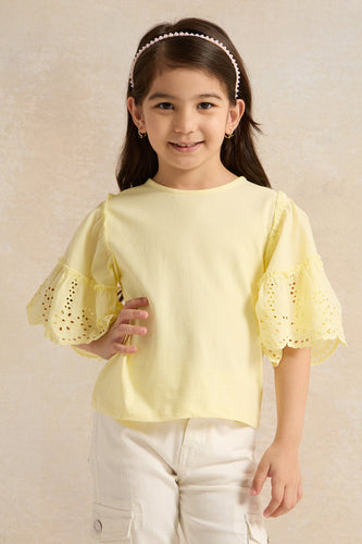 • بلوزة كاجوال منقوشة باللون الأصفر للبنات