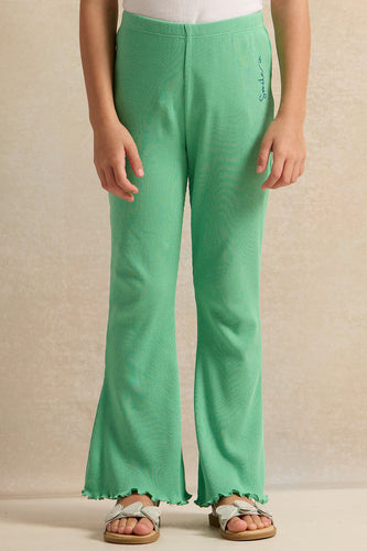 • بنطال ضيق مضلع باللون الأخضر للبنات