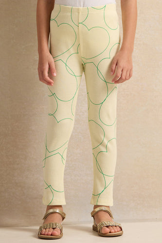 • بنطال ضيق مضلع بطبعة قلب أصفر للبنات