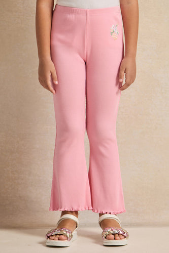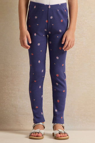 • بنطال ضيق مضلع مطبوع بنفسجي للبنات