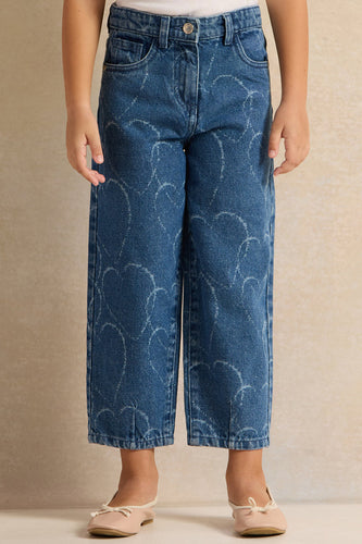 • بنطلون جينز بقصة أمي مطبوع عليه قلب أزرق للبنات