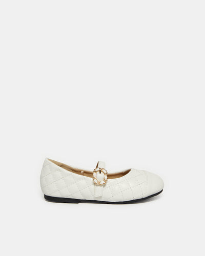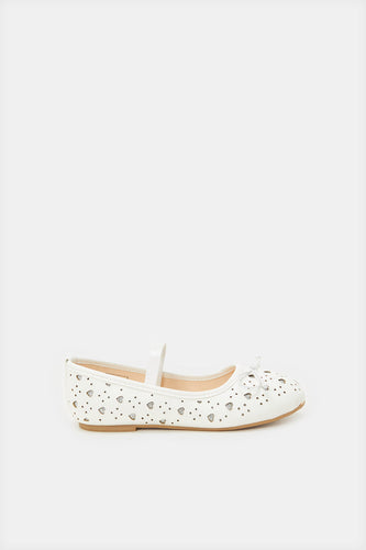 • حذاء باليه بيضاء بحزام مشبك للبنات