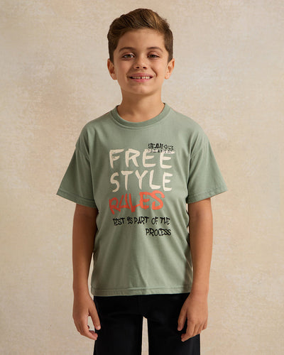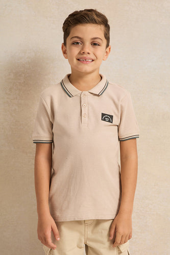 قميص بولو للأولاد باللون البيج مع شعار على الصدر وياقة مائلة