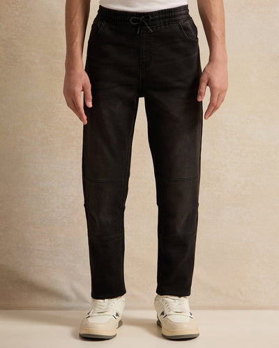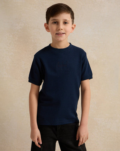 • تي شيرت جاكار أزرق داكن بأكمام قصيرة للأولاد