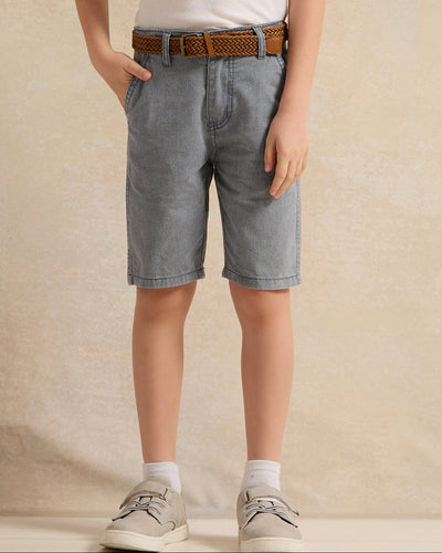 • شورت تويل أزرق مطبوع للأولاد مع حزام