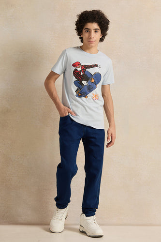 بنطلون جينز أزرق سهل الارتداء للأولاد الكبار