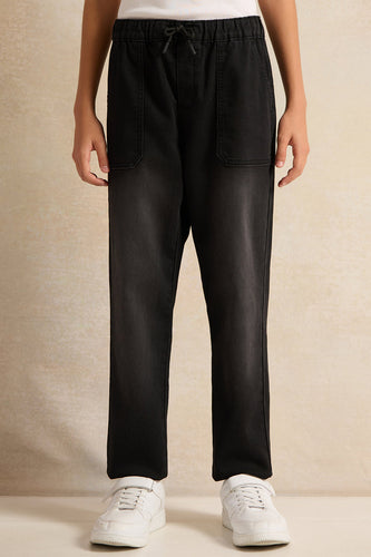 بنطلون جينز أسود محبوك للأولاد الكبار