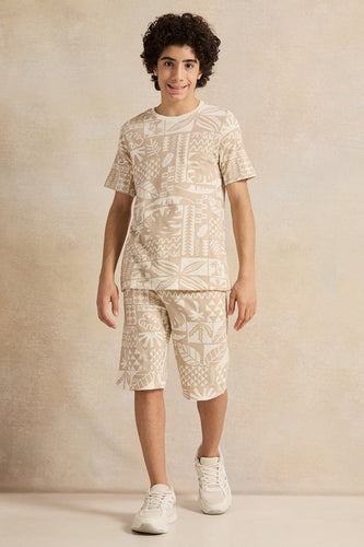 طقم جاكار زيتوني كاجوال للأولاد الكبار (قطعتان)