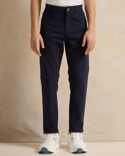 بنطلون أزرق داكن سادة بخمسة جيوب للأولاد الكبار
