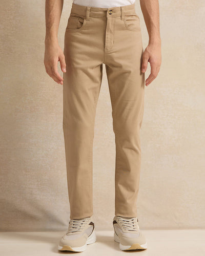 بنطلون بيج سادة بخمسة جيوب للأولاد الكبار