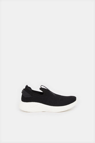 حذاء أسود محبوك سهل الارتداء للأولاد الكبار