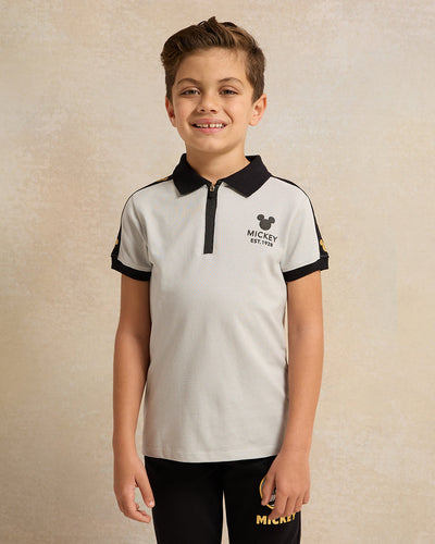 • قميص بولو مطبوع للأولاد باللون الأبيض