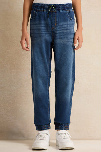 بنطال رياضي جينز أزرق داكن سهل الارتداء للأولاد الكبار