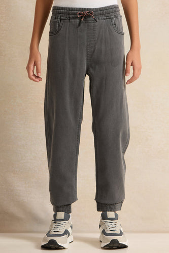 بنطال رياضي من قماش الدنيم الرمادي للأولاد الكبار