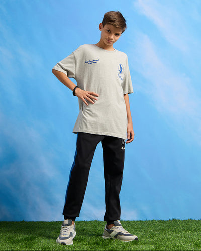 تي شيرت رمادي مطبوع كبير الحجم للأولاد الكبار