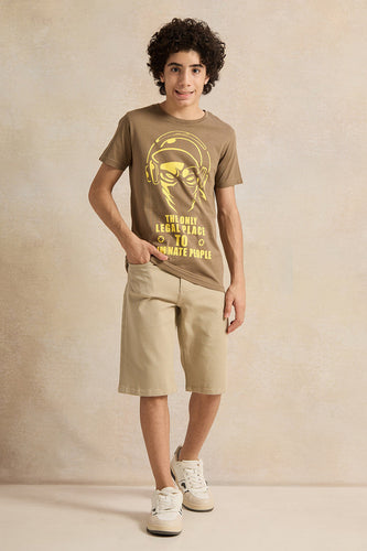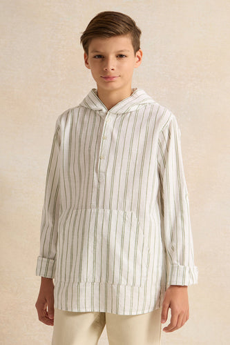 قميص مخطط بيج بغطاء رأس للأولاد الكبار