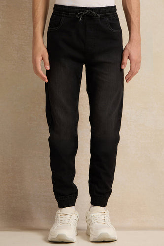 بنطال رياضي من قماش الدنيم باللون الأسود للأولاد الكبار