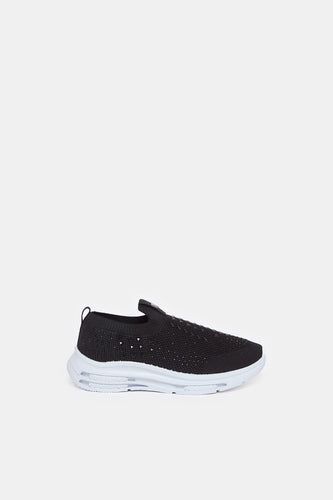 حذاء رياضي سهل الارتداء مزين بالألماس باللون الأسود للبنات