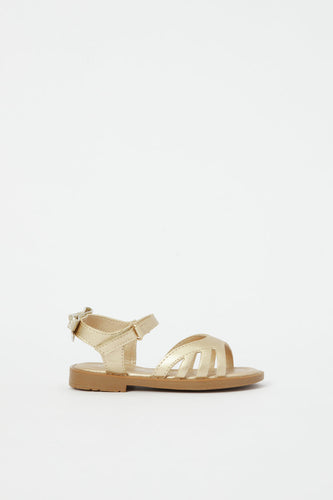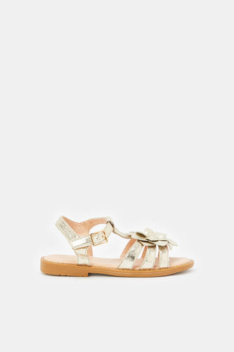 صاندل مزين بفيونكة باللون الذهبي للبنات الصغار