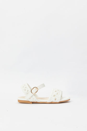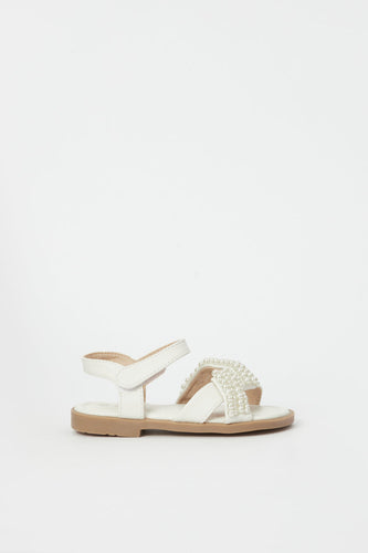 صندل مزين بلآلئ باللون الأبيض للبنات الصغار