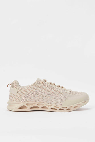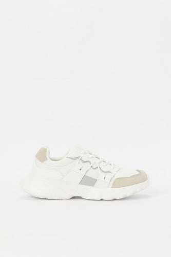 حذاء سنيكرز تشنكي باللون الأبيض والبيج للرجال