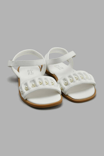 White Sandal Pearls Sandal صندل باللون الأبيض مزين بلؤلؤ