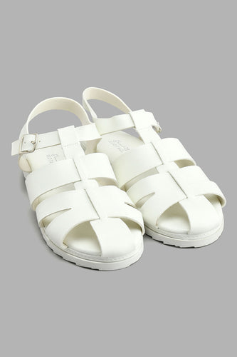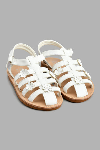 White Floral Detail Fisherman Sandal صندل باللون الأبيض مزين بورود