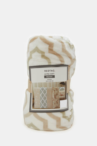 بطانية مطبوعة هندسية باللون البيج (حجم مزدوج)