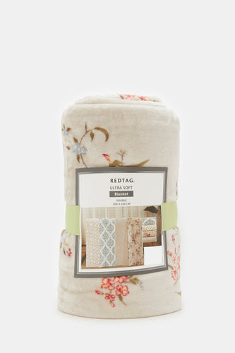بطانية مطبوعة بنقشة زهور باللون البيج (حجم مزدوج)