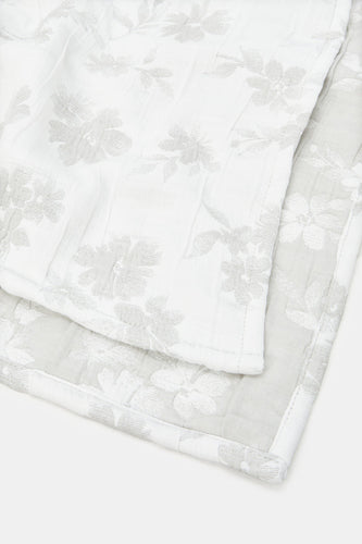 غطاء سرير مكون من 3 قطع مزين بالزهور باللونين الأبيض والرمادي (حجم مزدوج)